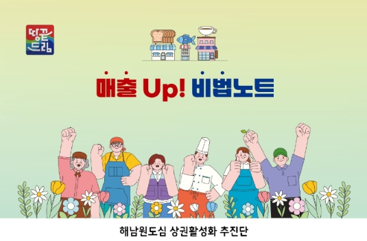 [파이낸셜경제=김예빈 기자] 해남원도심 상권활성화 추진단에서 상인들이 매출을 올릴 수 있는 방안을 담은 ‘매출 UP ! 비법노트’를 발행해 화제를 모으고 있다.