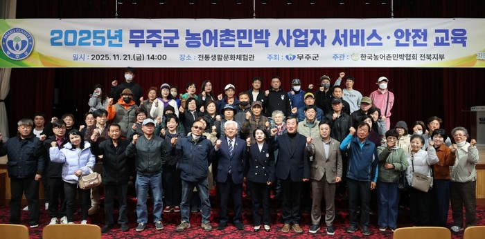 [파이낸셜경제=김예빈 기자] 무주군은 지난 21일 무주읍 소재 전통생활문화체험관에서 '2025년 농어촌 민박 사업자 서비스·안전 집합교육'을 실시했다고 밝혔다.