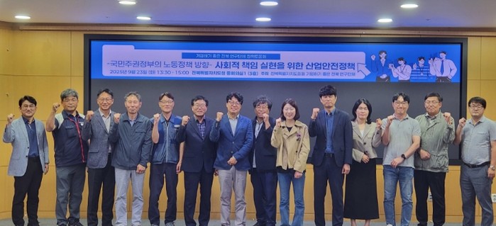 [파이낸셜경제=김예빈 기자] 전북특별자치도의회 의원 연구단체 ‘기업하기 좋은 전북’(대표위원 서난이)은 23일 전북자치도청 중회의실에서 ‘사회적 책임 실현을 위한 산업안전정책 모색’이라는 주제로 정책토론회를 개최했다. 이번 토론회는 이재명 국민주권정부의 안전한 일터 만들기에 발맞추어, 전북자치도의 대응 방향을 모색하기 위해 마련됐다.