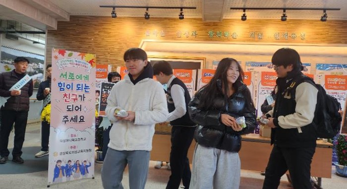 [파이낸셜경제=김지훈 기자] 경상북도교육청 의성교육지원청은 2025년 11월 21일 오전, 의성유니텍고등학교에서 학생들의 학교폭력에 대한 경각심을 키우고 자발적인 학교폭력 예방 의지를 강화하기 위한 학교폭력예방 캠페인을 실시했다.