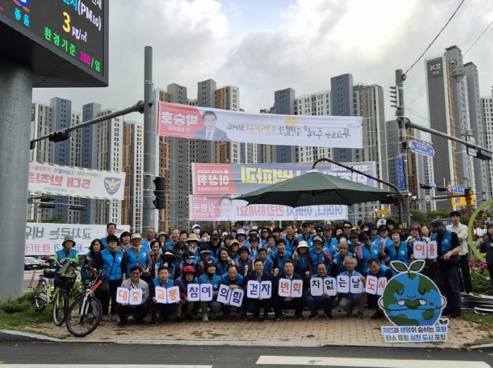 [파이낸셜경제=김지훈 기자] 포항시는 지난 22일 ‘세계 차 없는 날’을 맞아 대잠사거리 일원에서 대기환경 개선과 교통 혼잡 완화를 위한 캠페인을 진행했다.