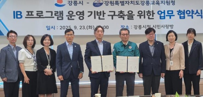 [파이낸셜경제=조성환 기자] 강릉교육지원청은 23일 오전 10시, 강릉시청에서 강릉시와 국제 바칼로레아(IB) 교육 프로그램 도입 및 운영을 위한 업무 협약을 체결했다.