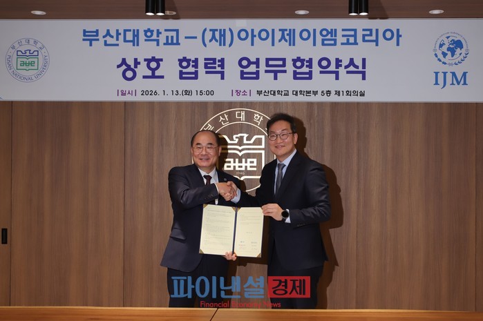 [파이낸셜경제=박영진 기자] 부산대학교(총장 최재원)와 국제 NGO IJM Korea(International Justice Mission Korea, 대표 민준호)가 부산대 학생들의 안전한 글로벌 활동 지원과 국제 범죄 예방을 위한 업무협약(MOU)을 체결했다. 13일 부산대학교에서 열린 협약식에는 부산대 최재원 총장, IJM Korea 민준호 대표 등 양 기관 주요 관계자들이 참석했다.