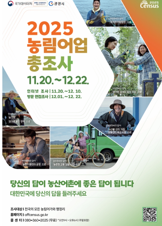 [파이낸셜경제=김예빈 기자] 광양시는 11월 20일부터 12월 22일까지 ‘2025 농림어업총조사’를 실시한다고 밝혔다.