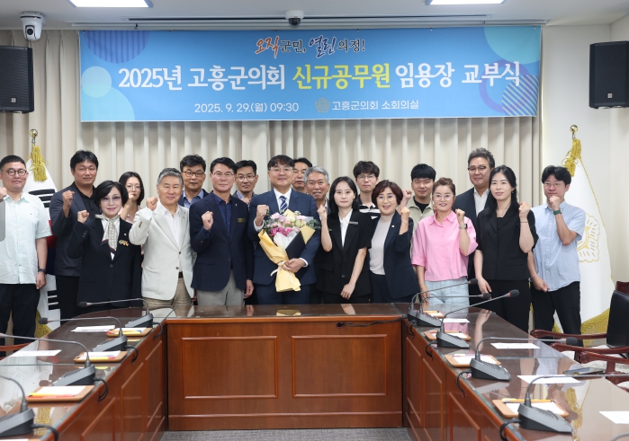 [파이낸셜경제=김예빈 기자] 고흥군의회는 소회의실에서 2025년 9월 29일 자 인사발령에 따른 신규 공무원 임용장 교부식을 가졌다.