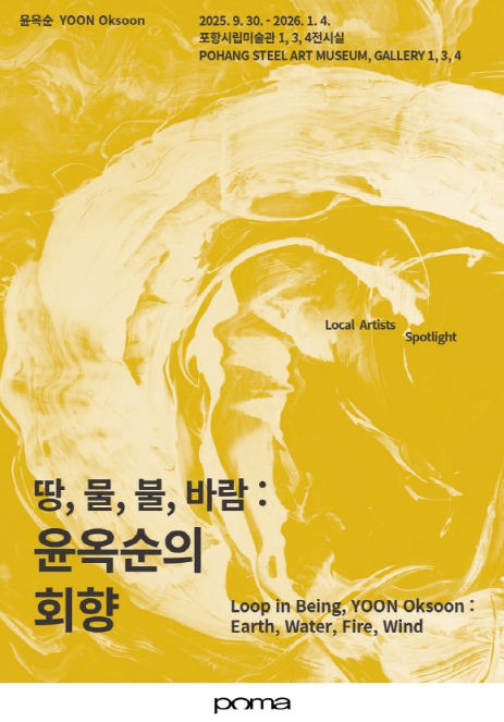 [파이낸셜경제=김지훈 기자] 포항시립미술관은 오는 30일부터 2026년 1월 4일까지 지역작가조명전 ‘땅, 물, 불, 바람: 윤옥순의 회향’과 소장품전 ‘기억윤슬’을 선보인다.