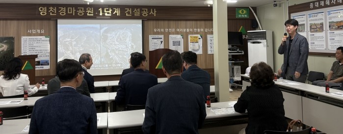 | ▲ 30일 영천시 이수회원들이 영천경마공원 조성 현장을 방문해 관계자로부터 설명을 듣고 있다. |
