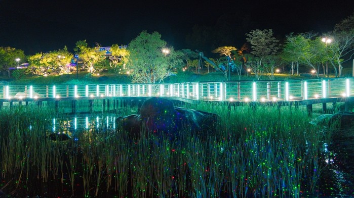 | ▲ 영상테마파크 - 분재공원 연못데크+반딧불 레이저조명 |