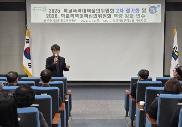 [파이낸셜경제=김기보 기자] 충청북도진천교육지원청은 지난 2월 12일, 학교폭력대책심의위원회 위원 36명을 대상으로‘2025학년도 하반기 학교폭력대책심의위원회 운영 결과 보고 및 2026. 학교폭력대책심의위원회 역량 강화 연수’를 실시했다.