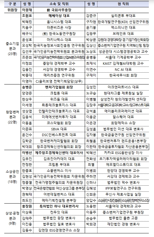 | ▲ 중소·벤처·소상공인 민관 정책협의회 위원 명단 |