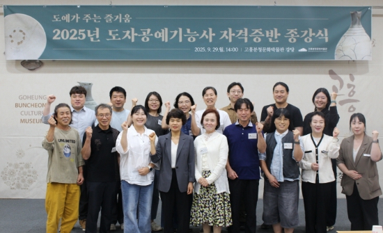 [파이낸셜경제=김예빈 기자] 고흥군 분청문화박물관은 고흥분청사기 도자문화 계승과 전문 도예인 육성을 위해 박물관 개관 이래 처음으로 ‘도자공예기능사 자격증반’을 개설하고, 지난 29일 박물관 대강당에서 종강식을 개최했다.