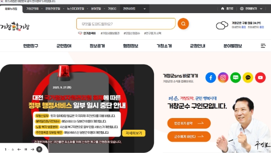 현재 행정전자서명, 전자문서유통 등 필수 행정서비스는 재개됐으나, 국민신문고, 모바일 신분증 등 일부 서비스는 여전히 전국적으로 접속이 중단된 상태다. 이에 따라 거창군은 같은 날 구인모 군수 주재로 대책 회의를 열고, 누리집 알림창을 통해 서비스 제한 목록과 대처 방안을 실시간 안내하는 등 불편 최소화를 위해 적극 대응하고 있다.