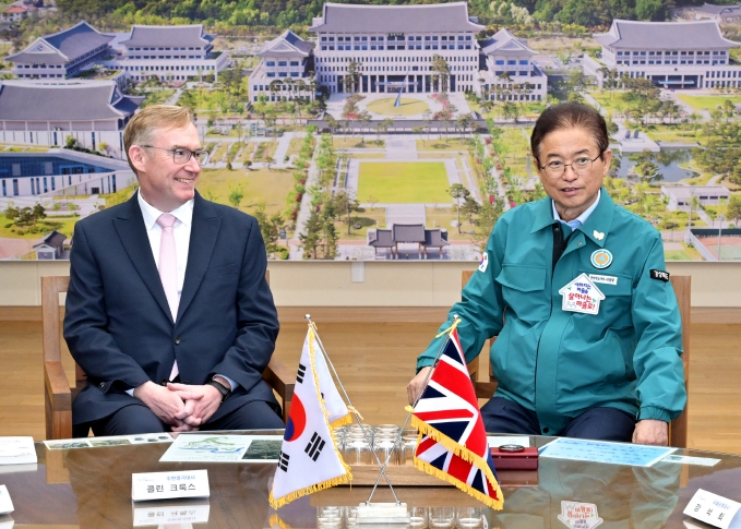 [파이낸셜경제=김예빈 기자] 이철우 경상북도지사는 3일 도청을 방문한 콜린 크룩스(Colin Crooks) 주한 영국대사 내외와 만나, 경주 APEC 정상회의의 성공적 개최 협력 방안과 함께 산업·문화·교육 등 다양한 분야의 교류 확대를 논의했다.