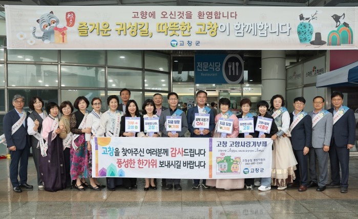 심덕섭 군수는 “고향을 찾는 길목에서 따뜻한 인사를 드릴 수 있어 뜻깊다”며 “앞으로도 고창의 문화유산과 축제, 그리고 군민이 함께하는 고향사랑기부제를 널리 알려 더 많은 분들이 고창을 찾고 응원해 주시길 기대한다”고 말했다.