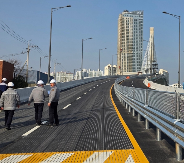 [파이낸셜경제=김지훈 기자] 포항시는 효자~상원 간 도로건설 공사의 핵심 구간인 해오름대교의 임시 개통을 앞두고 시민 안전과 원활한 차량 흐름을 위한 교통시스템 점검을 실시했다.