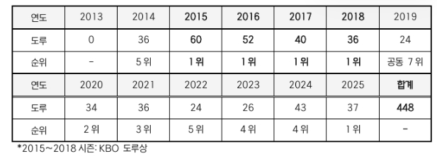 | ▲ LG 박해민 연도별 도루 및 순위 |