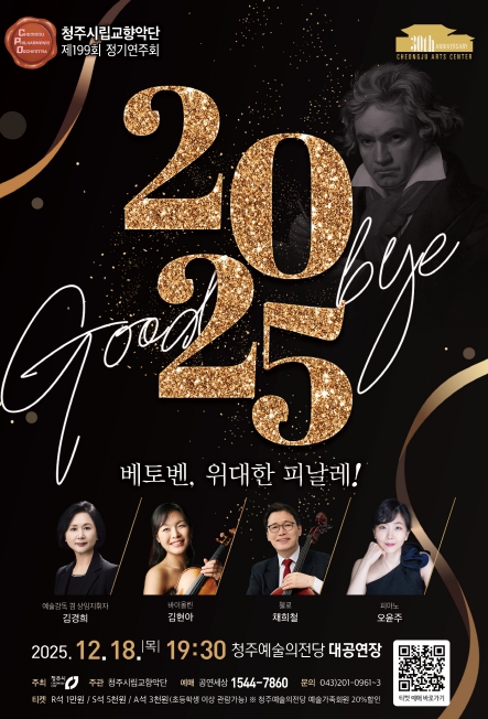 [파이낸셜경제=김기보 기자] 청주시립교향악단은 오는 12월 18일 오후 7시 30분 청주예술의전당 대공연장에서 제199회 정기연주회 ‘Good bye 2025 – 베토벤, 위대한 피날레!’ 공연을 개최한다.