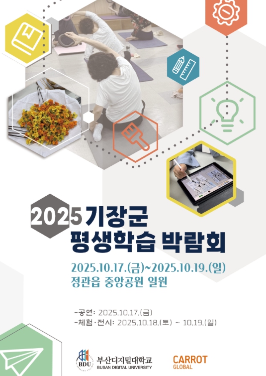 [파이낸셜경제=박영진 기자] 기장군는 오는 17일부터 19일까지 정관읍 중앙공원 일원에서부산디지털대학교와 ㈜캐럿글로벌 주최 및 주관으로 ‘2025년 기장군 평생학습 박람회’를 개최한다고 14일 밝혔다.