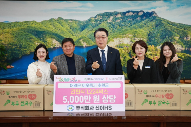 [파이낸셜경제=김예빈 기자] 화순군은 4일 ㈜신아에이치에스(회장 정현석)가 관내 취약계층을 위해 5천만 원 상당의 간편식을 기탁했다고 밝혔다.