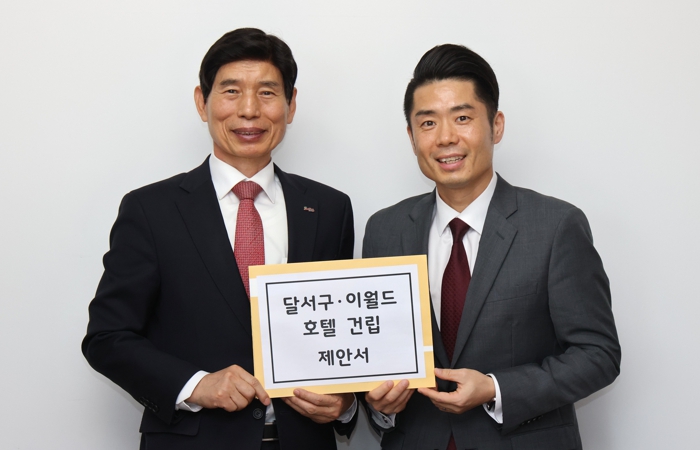 이태훈 달서구청장은 "이번 제안은 공원 내 건립이라는 현실적 제약을 넘어, 기업의 투자와 지역의 숙원인 도시재생을 동시에 해결할 수 있는 합리적인 대안"이라며 "이월드 호텔이 건립되면 신청사와 연계해 두류공원 일대가 명실상부한 대구의 랜드마크이자 관광 거점으로 도약할 것"이라고 밝혔다.