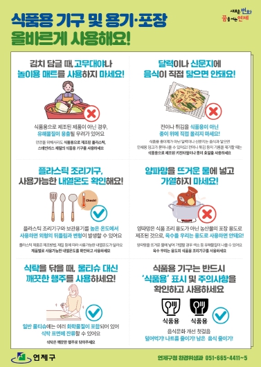 주석수 연제구청장은 “식품용 기구와 용기를 올바르게 사용하는 것은 단순한 생활 습관이 아니라, 우리 가족의 건강과 직결되는 중요한 문제”라며 “이번 홍보물이 널리 활용되어 안전한 식생활 문화가 정착되기를 기대한다”라고 말했다.