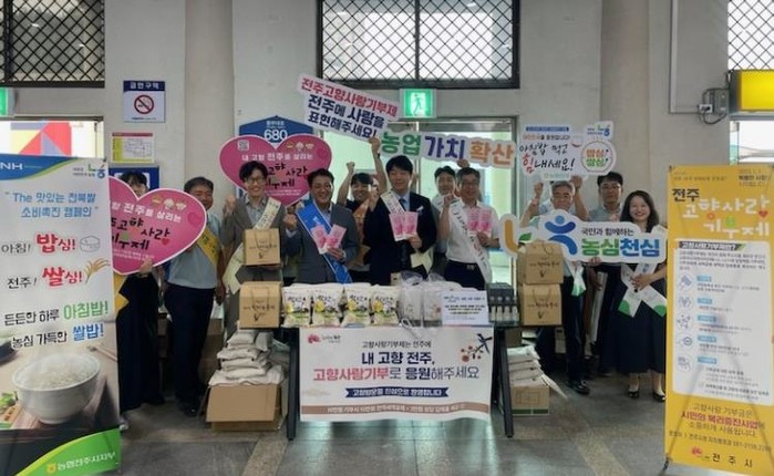 시는 2일 전주역에서 농협 전주시지부와 함께 ‘내 고향 전주, 고향사랑기부로 응원해주세요’를 주제로 고향사랑기부제 홍보 활동을 전개했다.