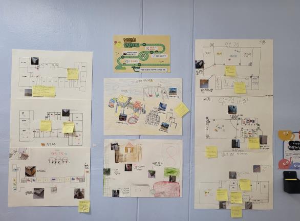 담당 교사들은 학생들이 통학로, 놀이터, 후문 주변 골목길 등에서 발견한 위험 요소를 지도에 표시하고 안전한 이동 경로와 개선 방안을 직접 제시한 성과물을 공유했다.
