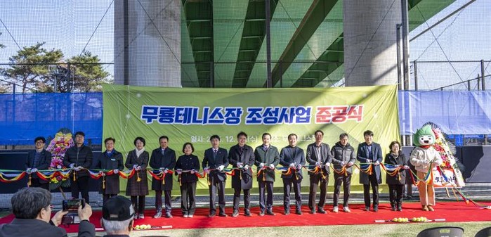 총 사업비 16억원을 들여 새로 조성한 무룡테니스장은 테니스코트 5면, 관리동, 화장실, 창고, 휴게실 등을 갖췄다.