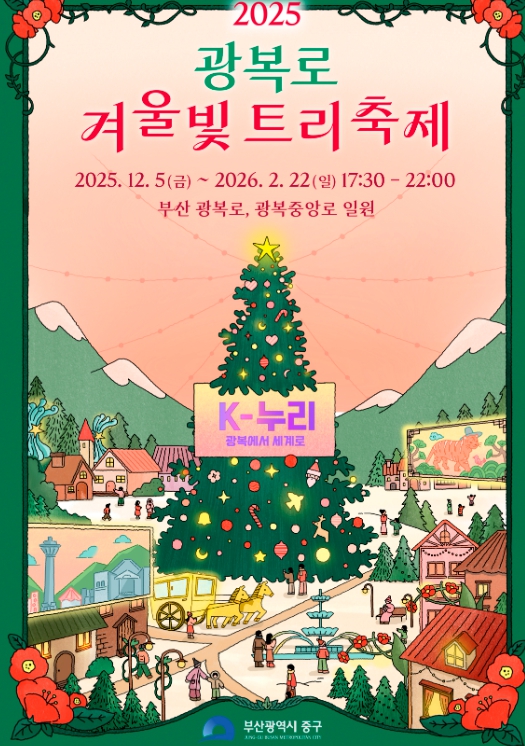 [파이낸셜경제=박영진 기자] 부산 중구는 『2025 광복로 겨울빛 트리축제』를 2025년 12월 5일부터 내년 2월 22일까지 80일간 추진한다. 축제의 시작을 알리는 점등 개막식은 12월 5일 금요일 오후 5시 30분 광복로 시티스폿 메인트리 앞 특설무대에서 개최된다.