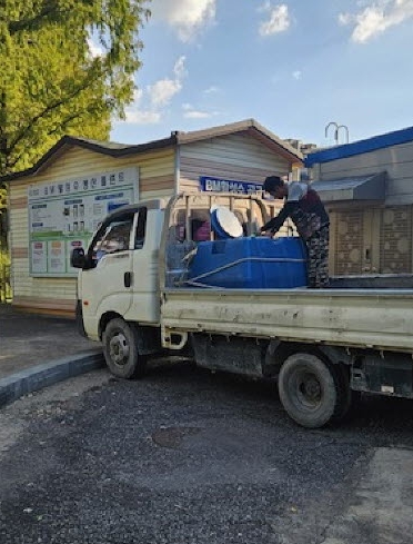 | ▲ 농업인이 BM활성수를 용기에 공급받고 있는 모습 |