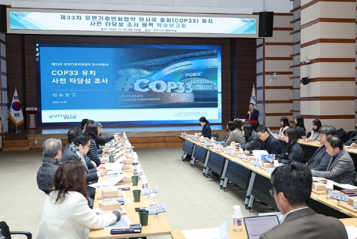 이상현 관광컨벤션도시추진본부장은 “이번 착수보고회를 통해 COP33 유치에 대한 국제적 기준과 포항시의 여건을 종합적으로 점검하는 출발점이 마련됐다”며 “이번 용역을 통해 포항시의 기후정책 역량과 산업·도시 경쟁력을 기반으로 실현가능한 유치 전략을 체계적으로 도출해 나가겠다”고 말했다.