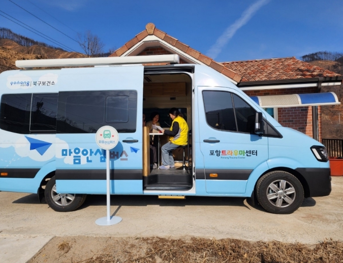 | ▲ 포항시 북구보건소 포항트라우마센터는 이동형 마음안심버스를 활용해 찾아가는 재난심리지원 모니터링을 실시하고 있다. |