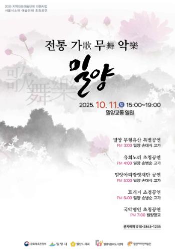 행사는 밀양 지역 예술인과 서울 소재 예술단체가 참여하는 초청 공연으로 구성된다.