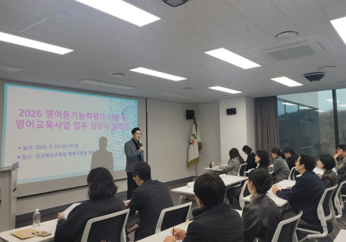 [파이낸셜경제=김지훈 기자] 경북교육청은 18일 본청 행복지원동 302호 회의실에서 도내 교육지원청과 직속 기관의 영어교육․국제교류 사업 담당자 20여 명을 대상으로 학생들의 영어 의사소통 능력 향상과 학교 영어 수업 개선, 국제교류 사업 운영 방안을 공유하기 위한 정책 설명회를 개최했다고 밝혔다.