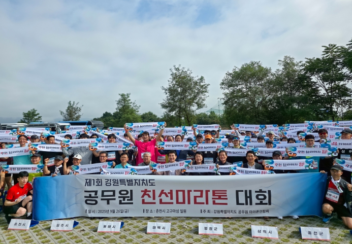 [파이낸셜경제=조성환 기자] 강원특별자치도는 9월 26일 춘천시 고구마섬 일원에서 도와 시군 공무원 등 200여 명이 참가한 가운데 '2025년 제1회 강원특별자치도 공무원 친선 마라톤 대회'를 성황리에 개최했다고 밝혔다.