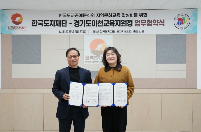 [파이낸셜경제=김기보 기자] 이천교육지원청은 1월 21일 한국도자재단과 이천시 관내 문화예술교육사업 및 학교교육프로그램 활성화를 위한 업무협약을 체결했다.