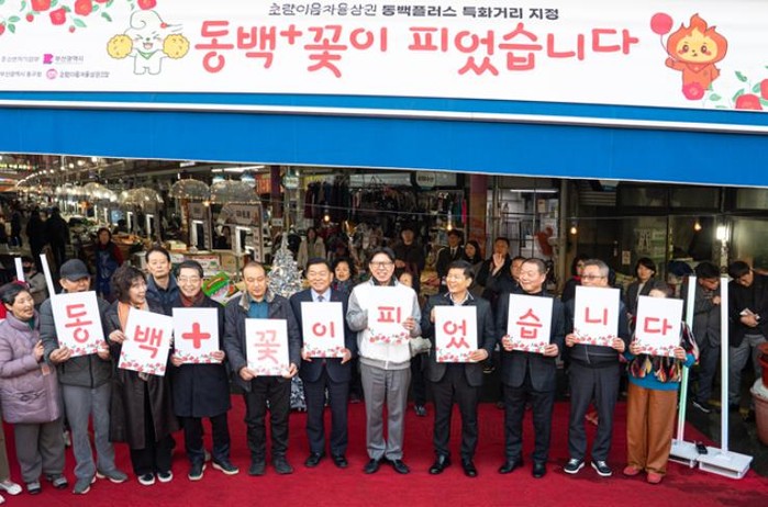 [파이낸셜경제=박영진 기자] 부산 동구 초량전통시장의 초량이음자율상권이 부산동백전 동백플러스 특화거리로 지정됨에 따라 이를 기념하는 행사 '동백+꽃이 피었습니다'가 열렸다.