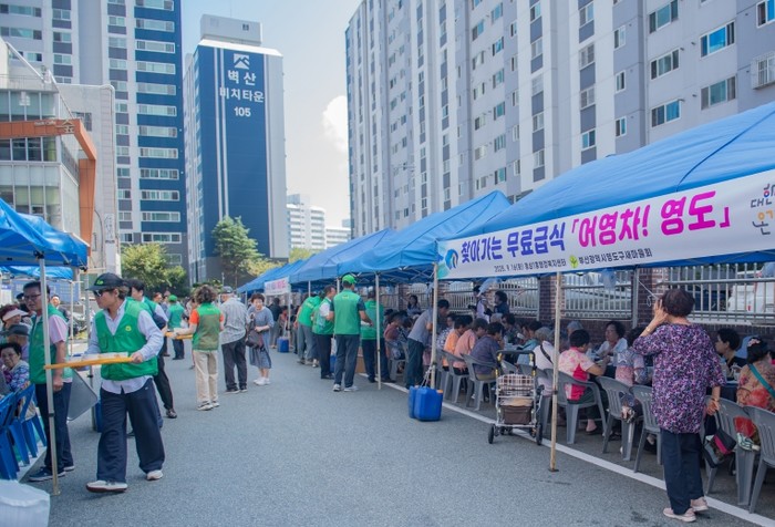 2025년 부산시 지역협치형 주민참여예산 사업으로 진행하는 어영차! 영도는 취약계층 2~300명에게 식사 대접과 함께 도시락을 배달하여 지역사회에 따뜻한 온기를 나누고자 추진되고 있으며, 이번이 세 번째 무료급식 행사이다.