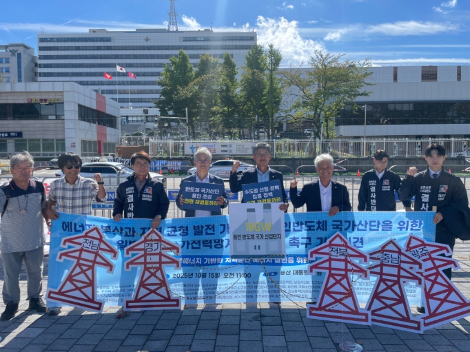 [파이낸셜경제=김예빈 기자] 전북특별자치도의회 초고압 송전선로 대책 특별위원회는 15일 용산 대통령실 앞과 국회의원회관에서 각각 국가기간전력망 지정 규탄 공동 기자회견 및 이재명정부의 에너지전환과 전력망 새판짜기 정책토론회에 참석했다.