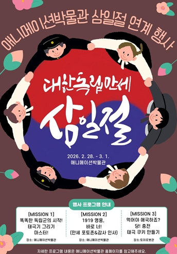 애니메이션박물관 관계자는 “관람객들이 삼일절의 의미를 어렵게 느끼지 않고, 직접 참여하고 맛보고 즐기며 애국심을 자연스럽게 키울 수 있도록 이번 행사를 마련했다”며 “가족과 함께 독립의 가치를 되새기는 뜻깊은 시간이 되길 바란다”고 말했다.