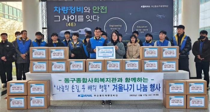 부산철도 차량정비단은 후원금 100만 원을 직접 복지관에 전달했으며, 해당 성금을 통해 결식의 우려가 있는 독거노인 20가정에게 선물꾸러미(5만 원 상당)를 제공했다.
