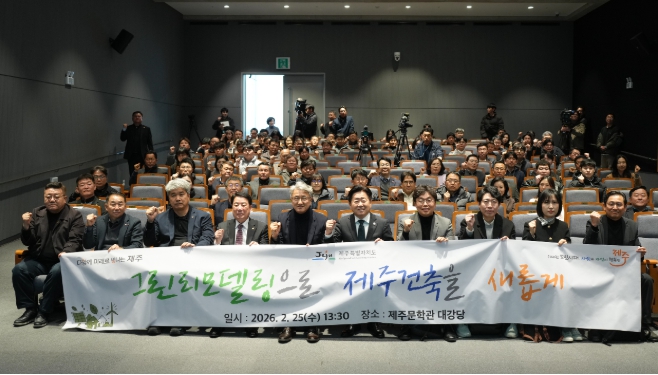 행사에는 오영훈 제주도지사를 비롯해 건축단체, 연구기관, 건설 유관기관 관계자 등 150여 명이 참석해 그린리모델링 정책 방향과 실행전략을 함께 논의했다.