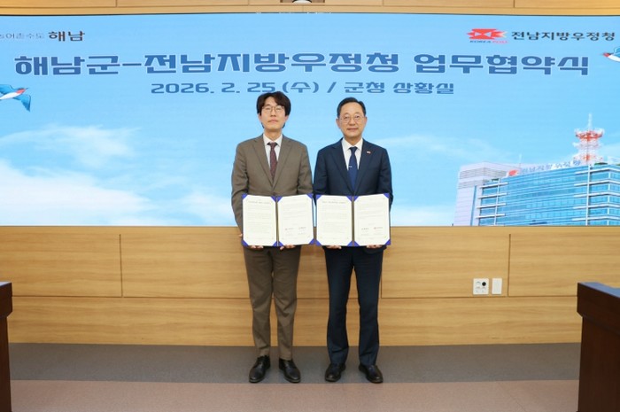 [파이낸셜경제=김예빈 기자] 전남지방우정청(청장 김동주)은 25일 해남군청에서 해남군(군수 명현관)과 지역 농·수·축산물 판로 확대를 위한 업무 협약을 체결했다고 밝혔다.
