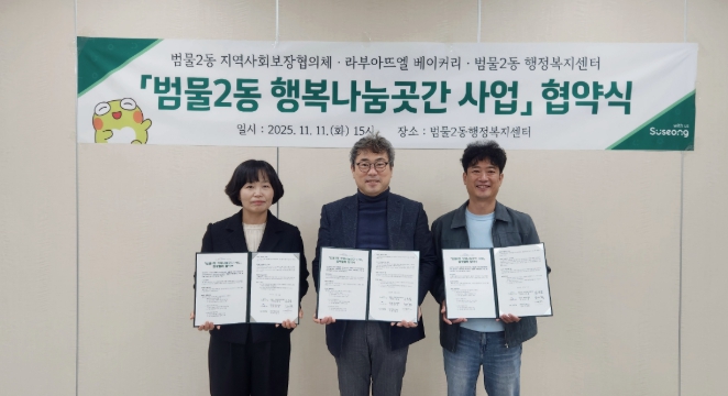 이번 협약에 따라 라부아뜨엘 베이커리는 매월 2회(30만 원 상당) 베이커리를 행복나눔곳간에 후원하고, 범물2동 지역사회보장협의체는 후원품을 거동이 불편한 노인·장애인 가정에 전달하며 안부 확인까지 함께 진행할 예정이다.