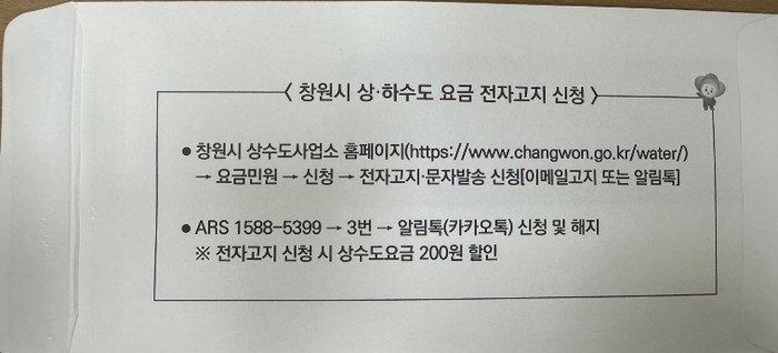 그리고 전자고지 신청 시 상수도요금 200원 할인 혜택을 받을 수 있다.