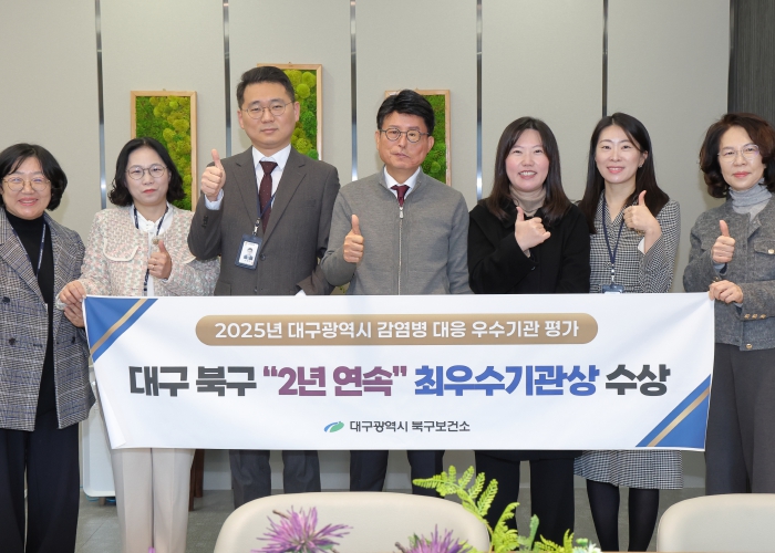 [파이낸셜경제=김지훈 기자] 대구 북구보건소는 대구광역시가 주관하는 '2025년 대구광역시 감염병 대응 우수기관'평가에서 2024년에 이어 2025년에도‘2년 연속 최우수기관’으로 선정되는 쾌거를 달성했다.