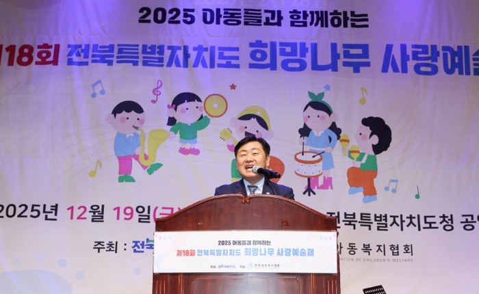 [파이낸셜경제=김예빈 기자] 전북특별자치도는 19일 도청 공연장에서 도내 15개 아동복지시설 아동과 종사자, 관계자 등 500여 명이 참석한 가운데 ‘제18회 희망나무 사랑예술제’를 개최했다.