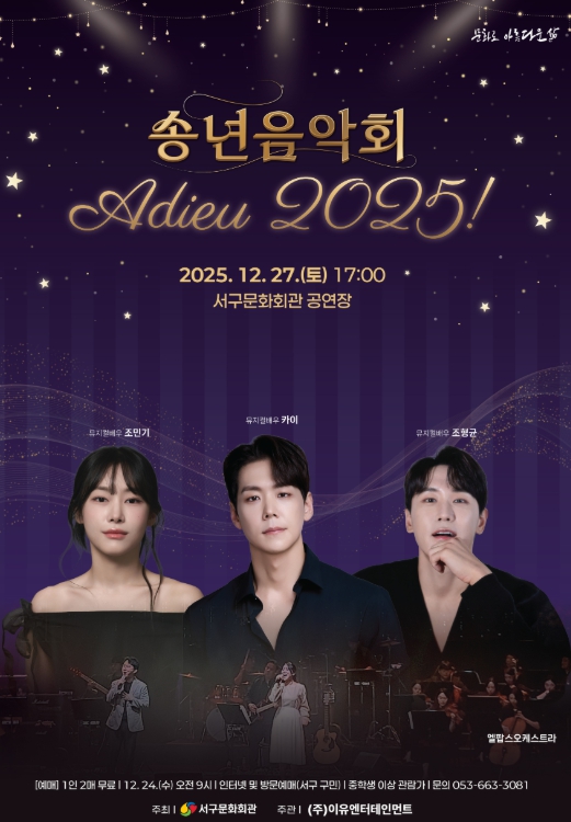 [파이낸셜경제=김지훈 기자] 서구문화회관은 국내 뮤지컬 무대를 평정하고 있는 배우들과 함께 올 한 해 가장 빛나는 시간을 선물하고자‘송년음악회 아듀! 2025’를 12월 27일 오후 5시 서구문화회관 공연장에서 개최한다.