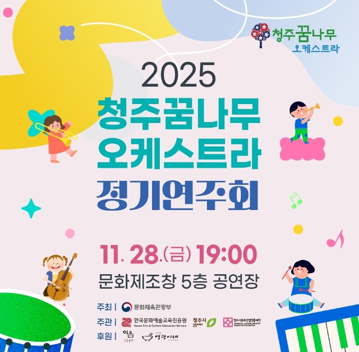 [파이낸셜경제=김기보 기자] 오는 28일 오후 7시 문화제조창 본관 5층 공연장에서 ‘2025 청주꿈나무오케스트라 정기연주회’가 막을 올린다.