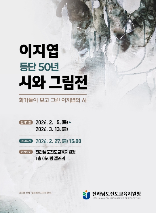 [파이낸셜경제=김예빈 기자] 전라남도진도교육지원청은 2월 5일부터 3월 13일까지 아리랑 갤러리에서 이지엽 시인 등단 50년을 기념하는 『시와 그림展』을 개최한다.